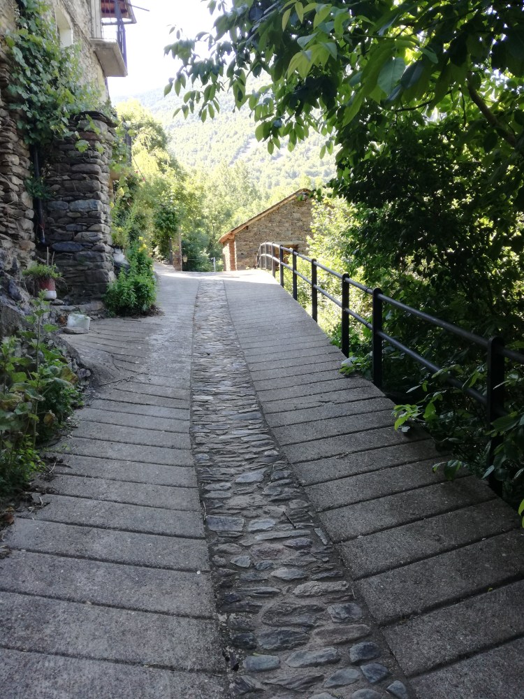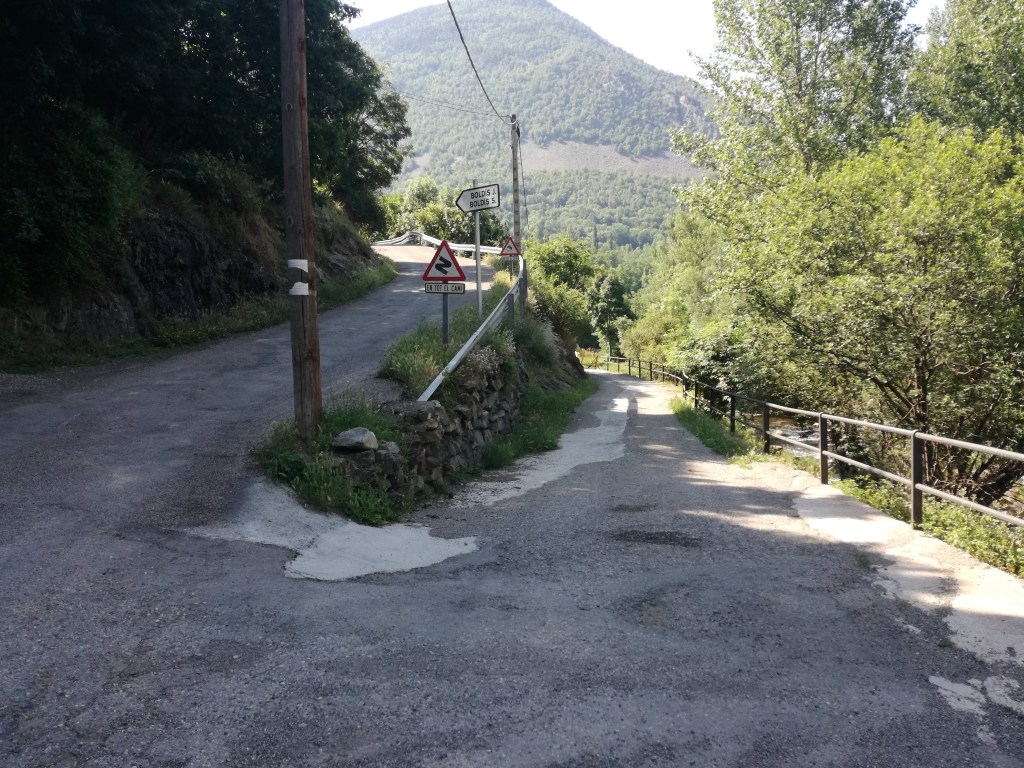 Entrem a Lladorre una vegada hem passat el Camping Serra. Entrem en el poble travessant el riu, i girem cap a la dreta.