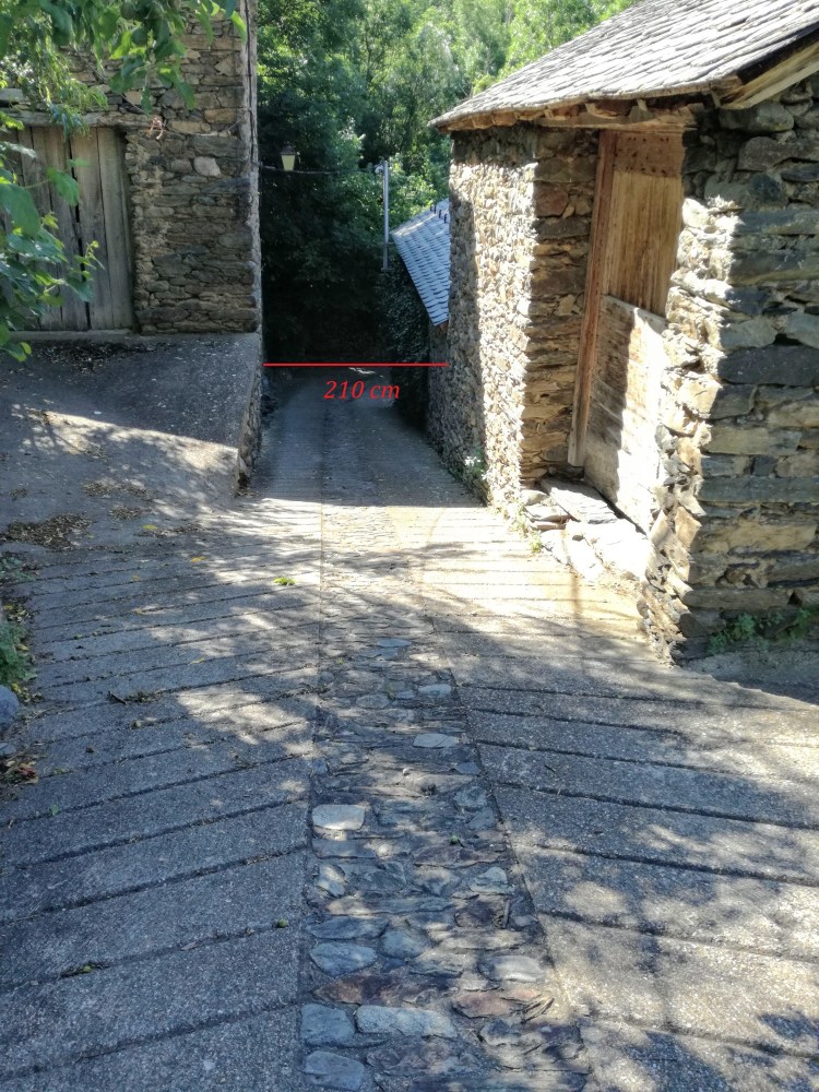 Atenció a l’amplada. Aquesta carrer, en el seu punt més estret fa 210 cm.